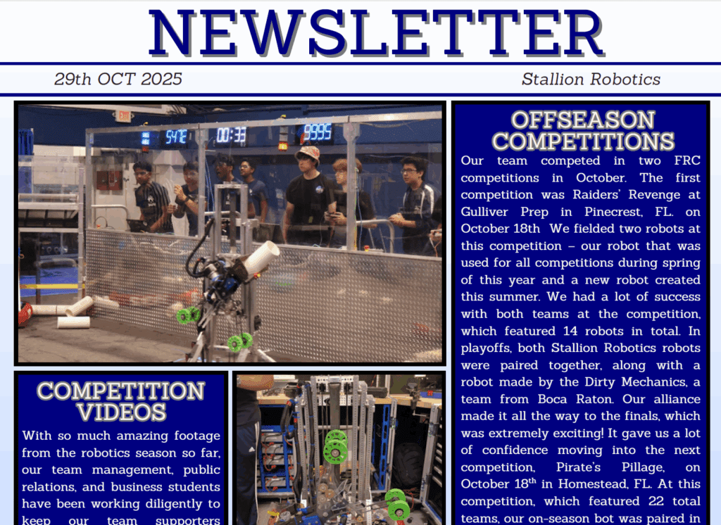 We are proud to sponsor and support Taiowa Donovan and Team 5472 high school robotics team, FIRST competition robot, and the Autonomous Security Robot Drone Enhancement.